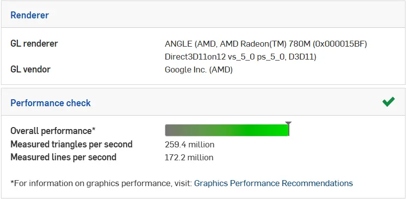 chrome://settings/in your search bar to navigate to chrome settings. Make sure that "Use graphics acceleration when available" is enabled. Relaunch chrome if you have updated it to enable it.